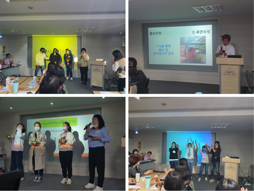 다양한 주제와 활동의 결과를 발표하는 팀 리더들~