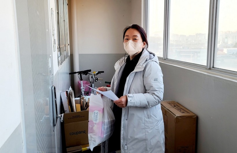 배달 봉사 중인 김윤정 부이사장님의 모습이에요!