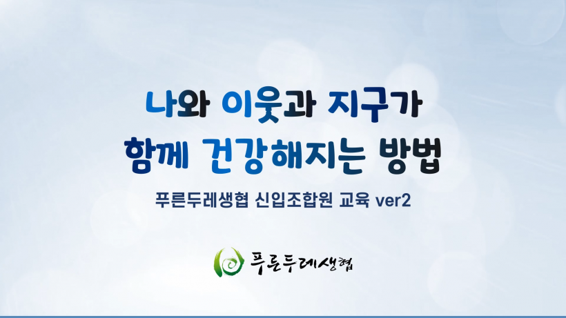 그런 만큼 푸른두레생협에서는 신규 조합원 교육을 진행한다고 해요!