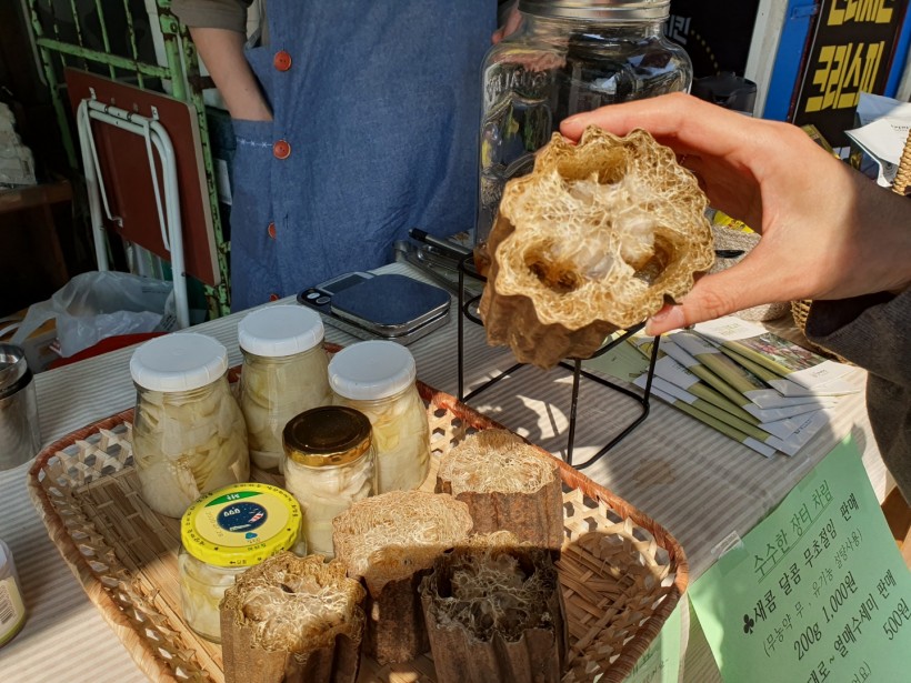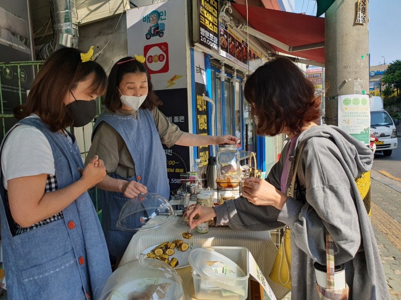 수수한 장터는 조합원들이 손수 만들어 온 바나나 머리띠만큼
