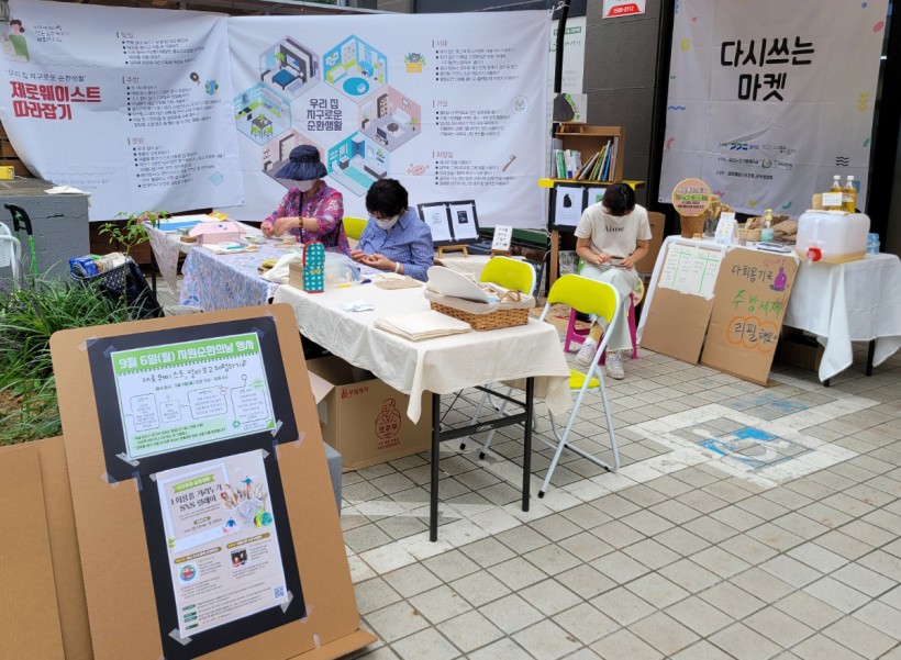 하루에 하나씩 습관 바꾸기로 ▶ 일회용품 쓰지 않기 ▶ 플라스틱 대신 천연 소재 쓰기 ▶ 꼭 필요한 물건만 구입해 오래오래 쓰기 ▶ 손수건, 텀블러, 장바구니 사용하기 등 실천 활동 캠페인과 제로 웨이스트 아이템 전시, 환경 관련 도서 등을 선보였습니다!