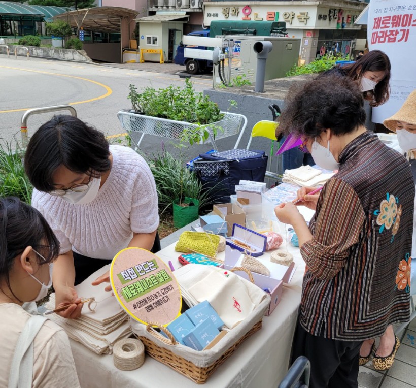 삼베 수세미 뜨기, 소창 손수건 도장 찍기 등 제로웨이스트 체험 활동은 조합원들의 큰 호응을 얻으며 재강좌를 계획했고, 지역단체 네트워크로 함께한 고양시 최초 제로 웨이스트 숍 '산두로 상점'에서 준비한 주방 세제 리필 코너와 다양한 제로 웨이스트 물품 판매는 친환경 제품들을 만나볼 수 있는 좋은 기회였습니다.