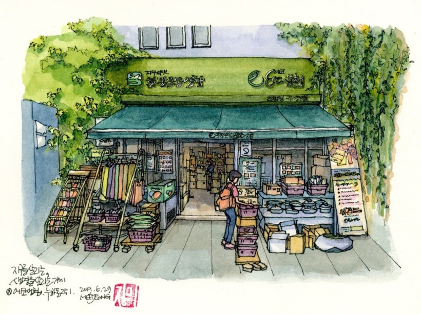 내가 좋아하는 카페도 그리고, 식당도 그리고, 우리 동네 골목도 그리지요.