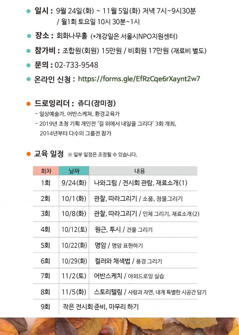 올해는 5월과 10월에 각각 드로잉 모임에서 강좌도 진행했었어요.