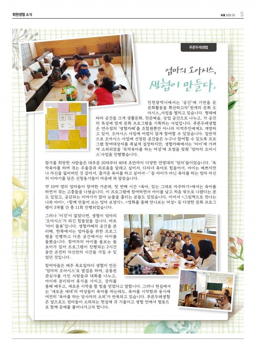 [푸른두레생협] 엄마의 오아시스, 생협이 만들다 > 회원생협 소식