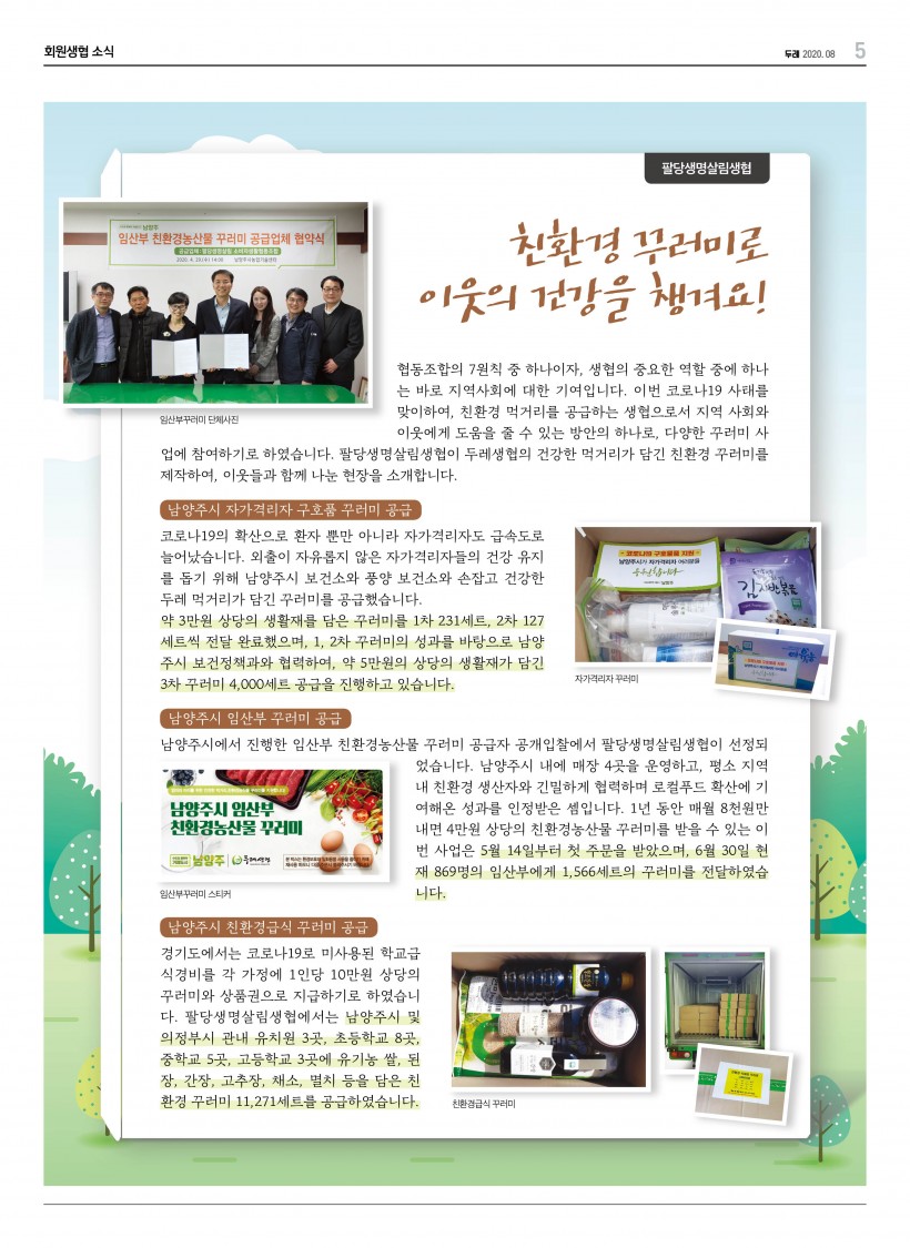 [팔당생명살림생협] 친환경 꾸러미로 이웃의 건강을 챙겨요! > 회원생협 소식