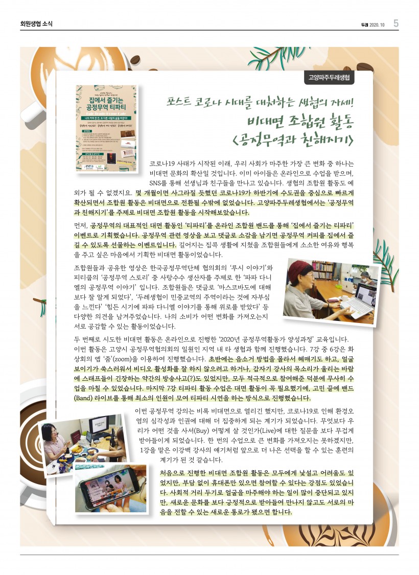 [고양파주두레생협] 비대면 조합원 활동<공정무역과 친해지기> > 회원생협 소식