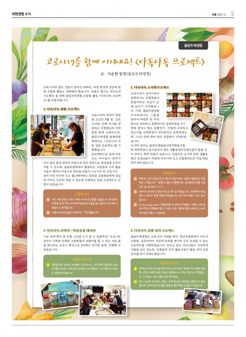 [울림두레생협] 코로나19를 함께 이겨내요! <다독다독 프로젝트> > 회원생협 소식