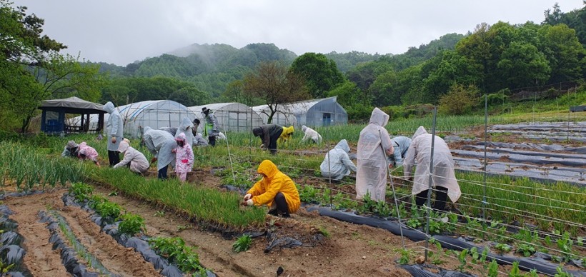 비가 와서 일손 돕기는 조금 어려움이 있었지만