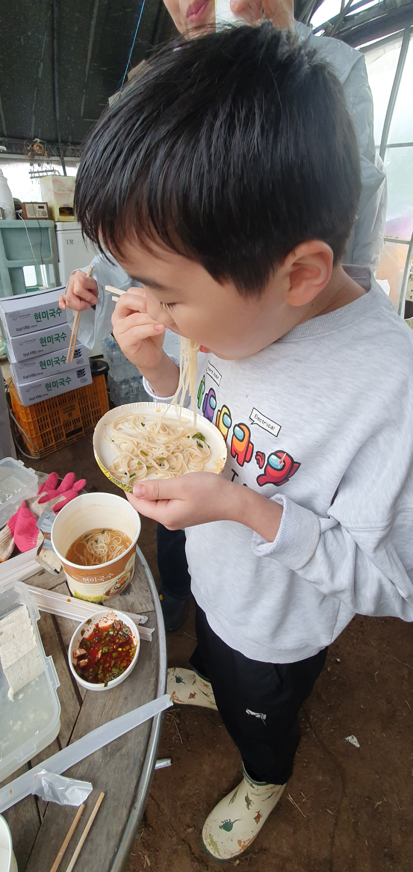 다른 농가로 이동하여 새참으로 현미국수를 먹었는데