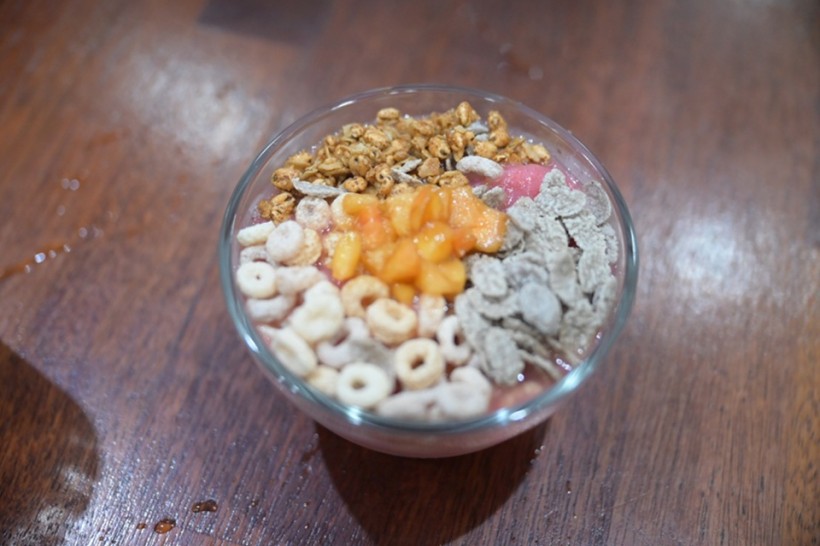 여기에 복숭아 슬라이스와 생협의 후레이크를