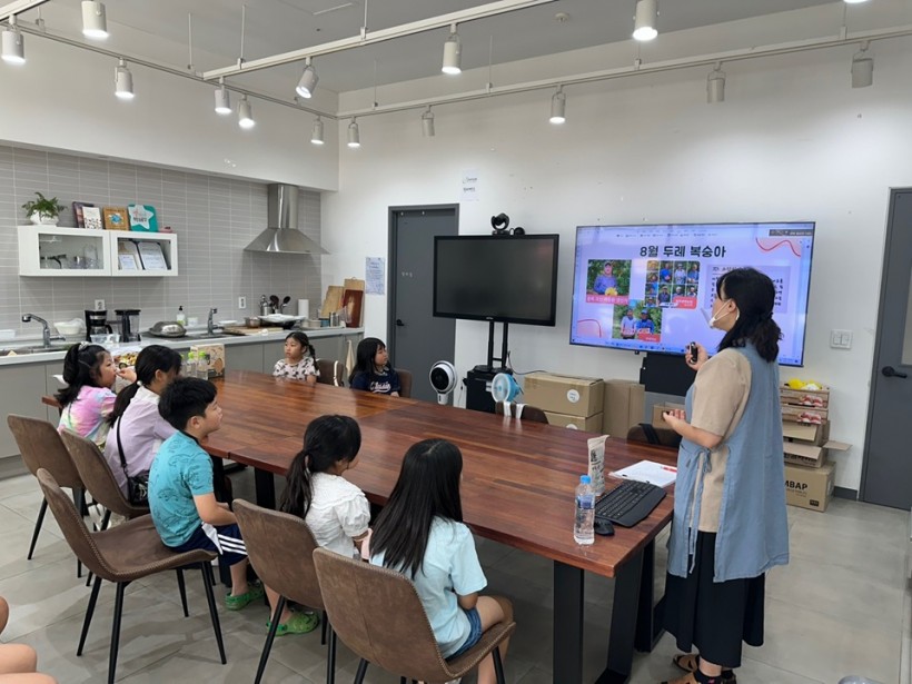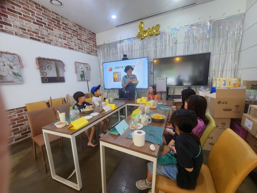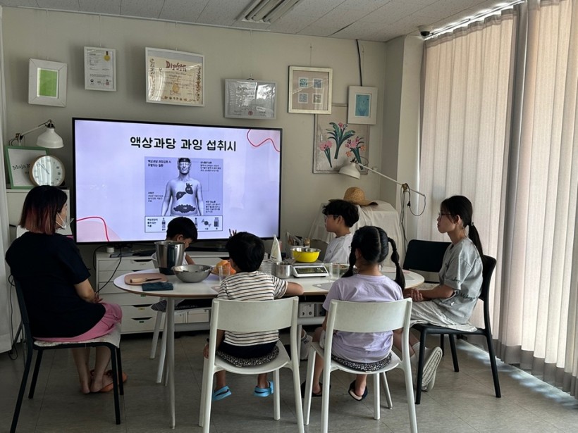 어린이 친구들과 함께 건강한 식생활에 대해 공부하는