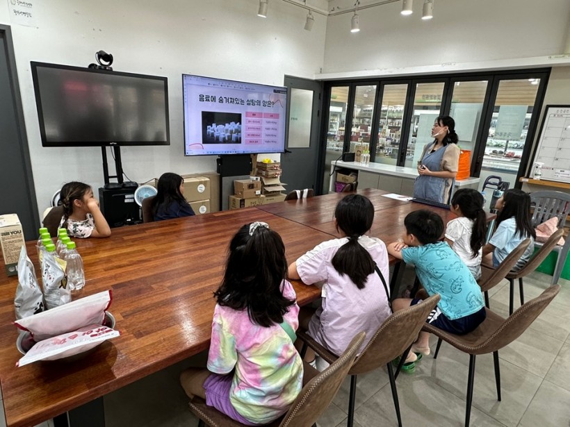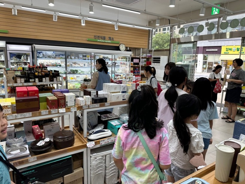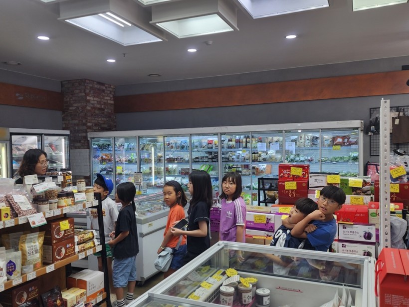 식생활교육을 마치고, 선생님과 함께 매장을 둘러보며