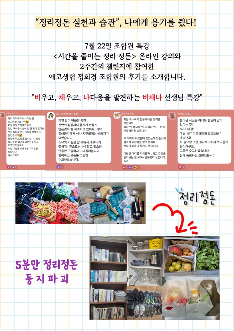[에코생협] “정리정돈 실천과 습관”, 나에게 용기를 줬다!