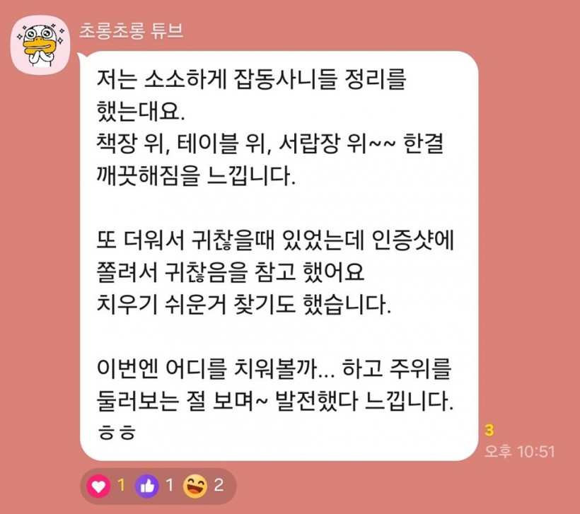“한꺼번에 하지 않아도 되는구나, 완벽하게 하지 않아도 되는구나”