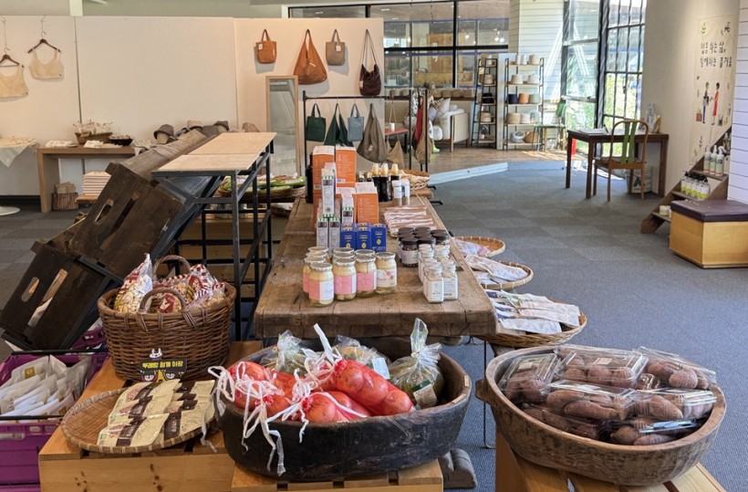작품 사이로 놓인 생활재와 농산물, 이어진 채식 만찬까지,