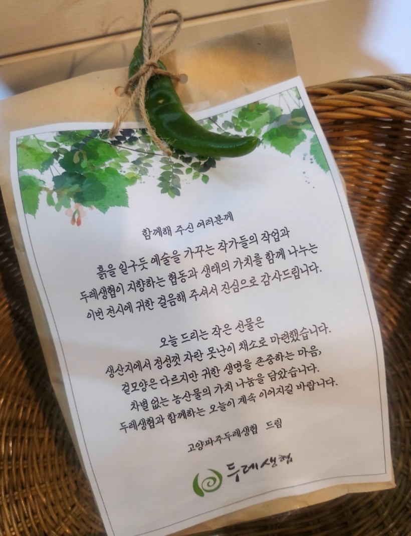 이번 전시는 두레생협이 처음으로 예술과 손잡은 자리라 더 의미가 컸어요.
