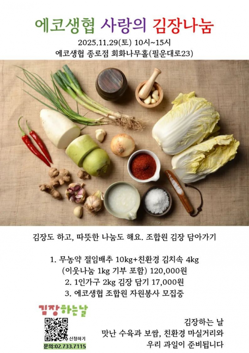 그러던 중 에코생협에서 김장을 한다는 소식을 들었어요.
