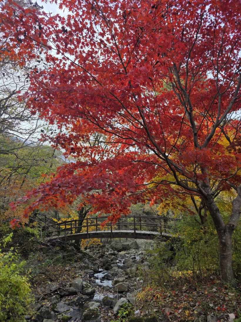 알록달록 단풍 속에서 고즈넉한 사찰의 분위기를 느끼며 걷다 보니,