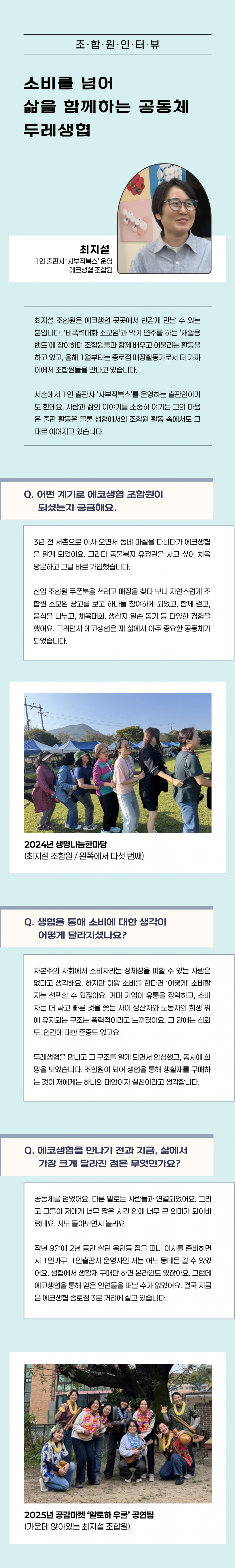 [에코생협] 소비를 넘어 삶을 함께하는 공동체 두레생협(최지설 조합원 인터뷰)