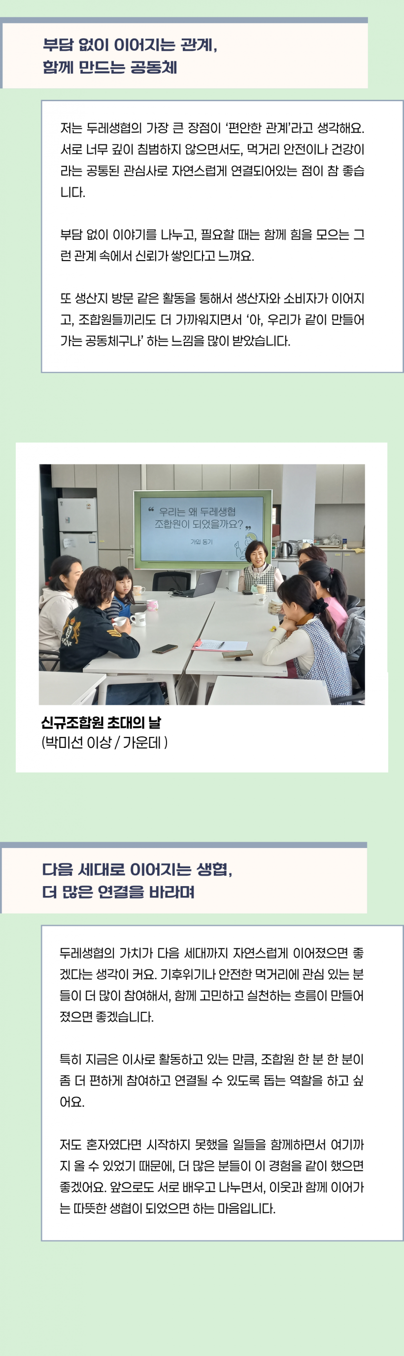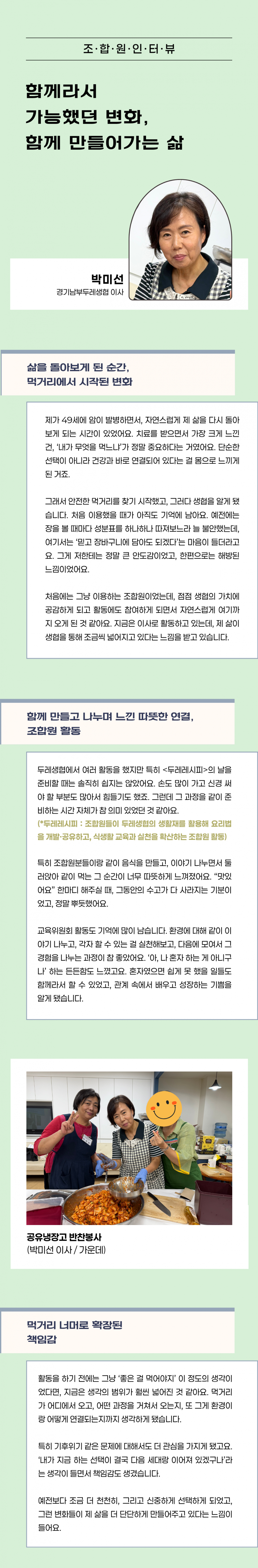 [경기남부두레생협] 함께라서 가능했던 변화, 함께 만들어 가는 삶(박미선 경기남부두레 이사 인터뷰) 페이지 정보 작성자 두레지기 작성일26-03-27 15:56 조회145회 댓글0건 목록 본문 목록