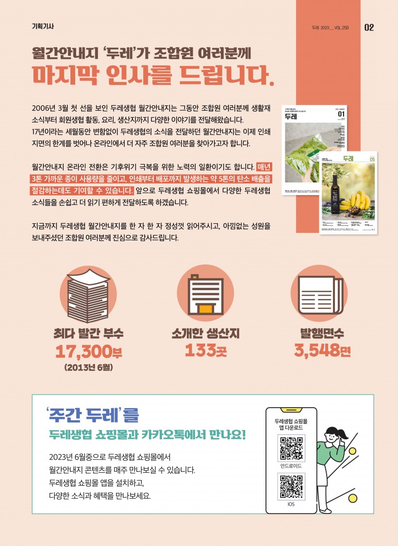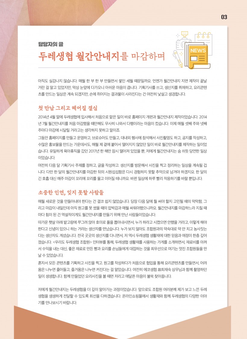 [기획기사] 월간안내지 '두레'가 조합원 여러분께 마지막 인사를 드립니다.