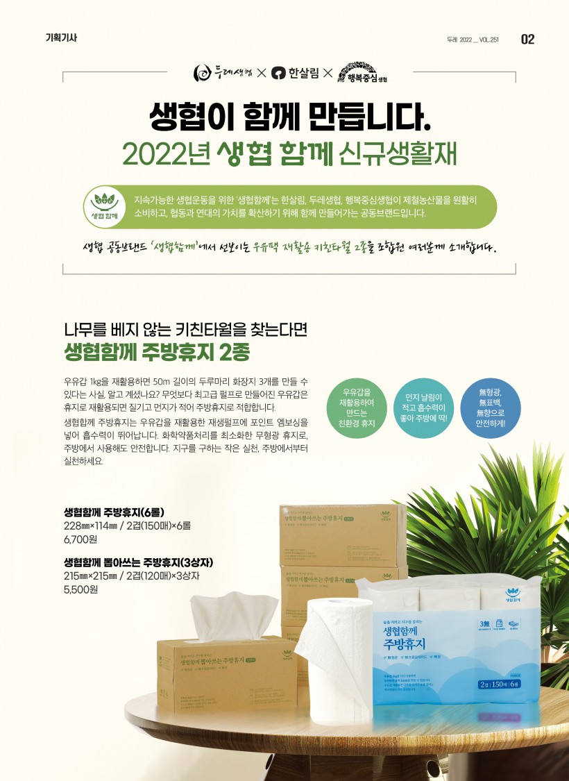 [기획기사] 생협이 함께 만듭니다. 공동브랜드 생협함께(주방휴지 2종)