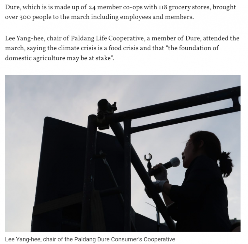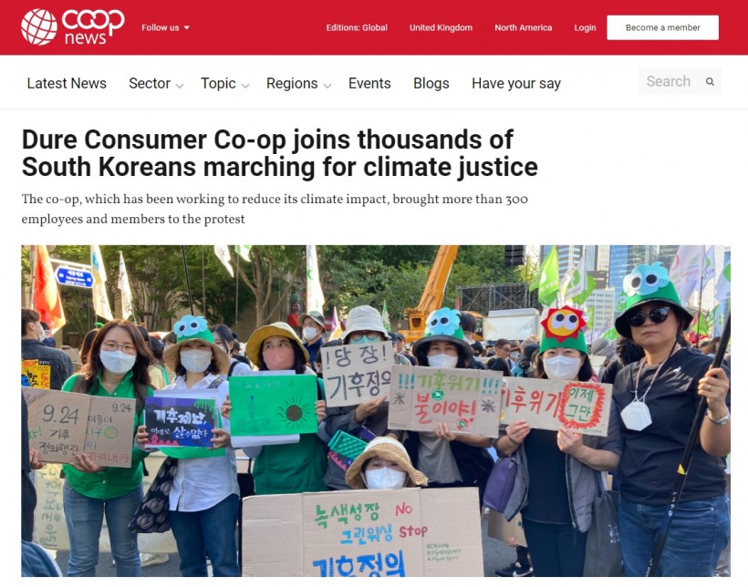 [세계협동조합] 10월소식|전 세계 협동조합 뉴스(Co-op News)에 소개 된 두레생협 924 기후정의행진 참가