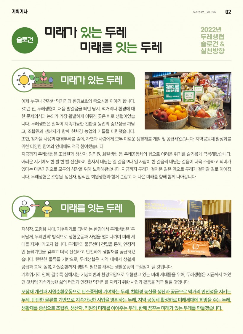 [기획기사] 2022년 슬로건 <미래가 있는 두레, 미래를 잇는 두레>