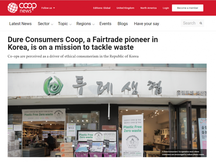 안녕하세요. 두레생협이 전 세계 협동조합 뉴스 웹 사이트인 Co-op News에 소개되어 이 기사를 전달 드리려합니다.