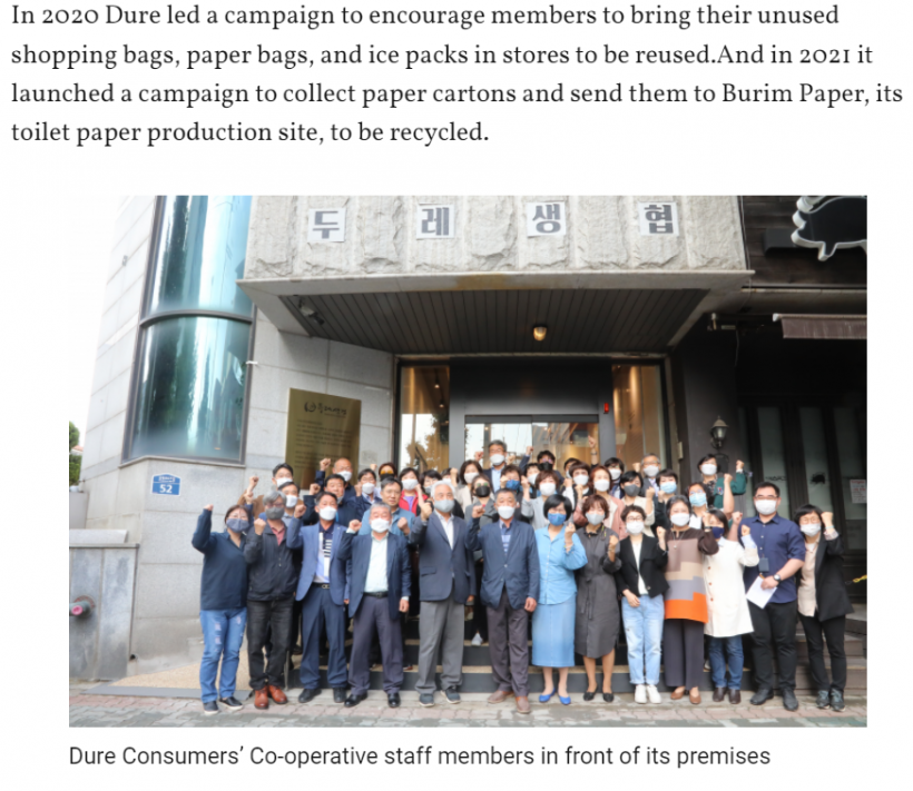 <한국의 공정무역 선구자인 두레생협은 일회용쓰레기 문제를 해결하기 위해 노력합니다>