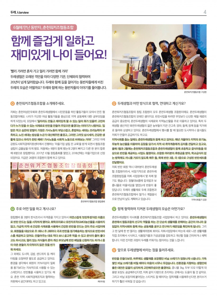 [인터뷰] 함께 즐겁게 일하고, 재미있게 나이 들어요! (춘천워커즈협동조합) > 언론보도/자료
