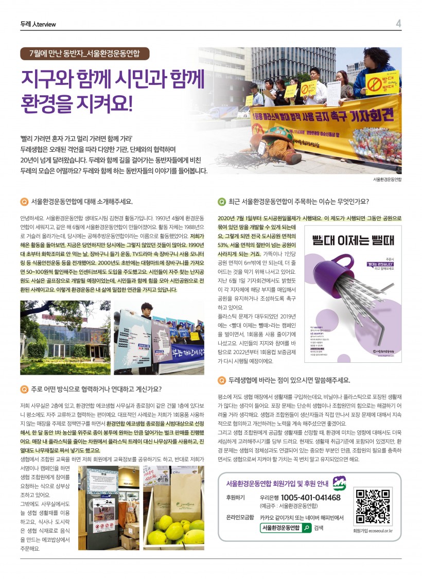 [인터뷰] 지구와 함께 시민과 함께 환경을 지켜요!(서울환경운동연합) > 언론보도/자료