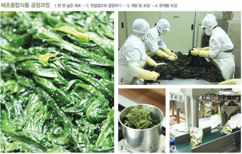 해초는 원초 그대로를 염장하여 공급하기 때문에, 원초의 질이 모든 것을 결정합니다. 겨울에 포자를 퍼트리며 자라는 해초는 2월부터 4월 사이에만 수확이 가능합니다. 이 시기에 바닷가 근처의 큰 몇몇 염장공장에서는 원초를 수매하여, 한 번 삶고 염장하여 전국의 가공공장에 공급하게 됩니다.