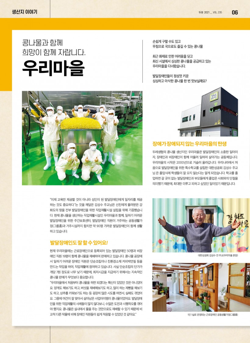 [우리마을] 콩나물과 함께 희망이 함께 자랍니다. > 생산지&생활재
