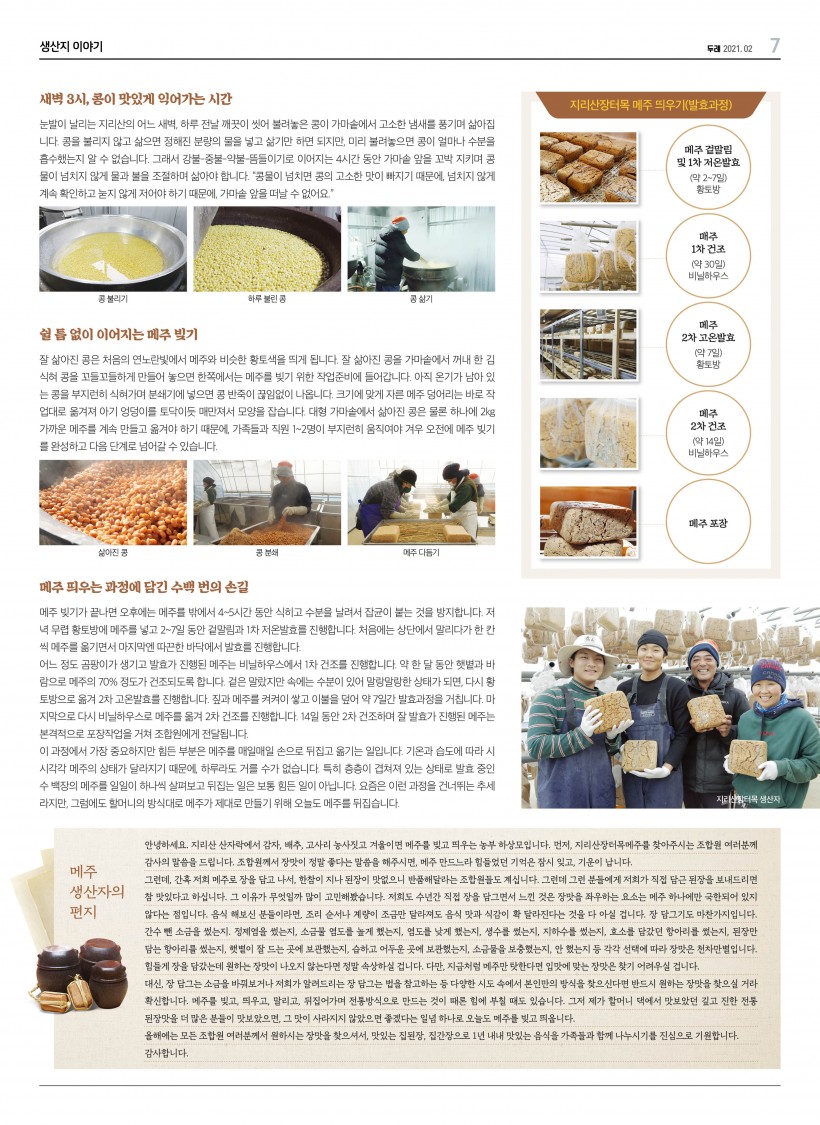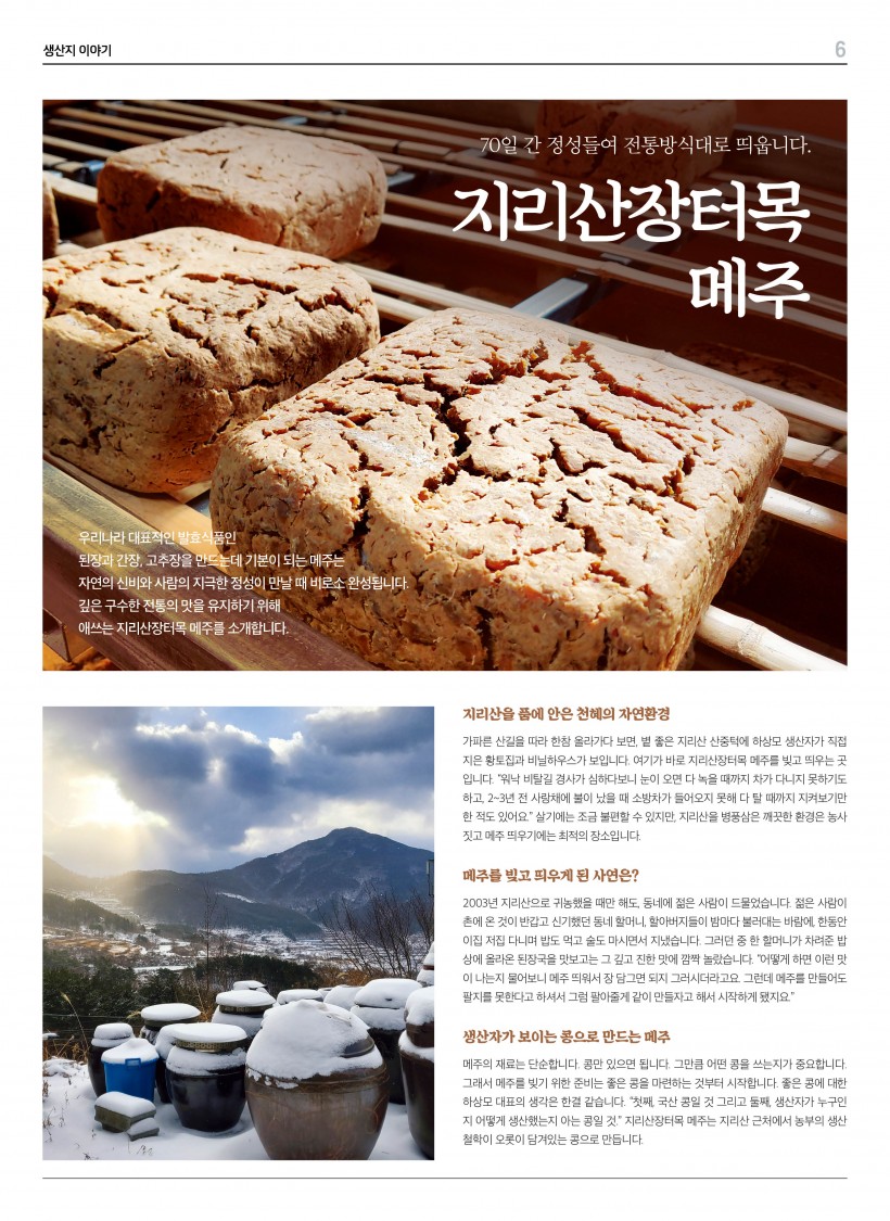 [지리산장터목 메주] 80일 간 정성들여 전통방식대로 띄웁니다. > 생산지&생활재