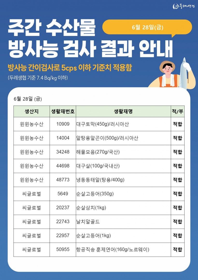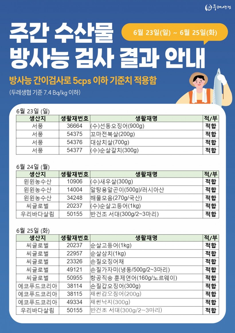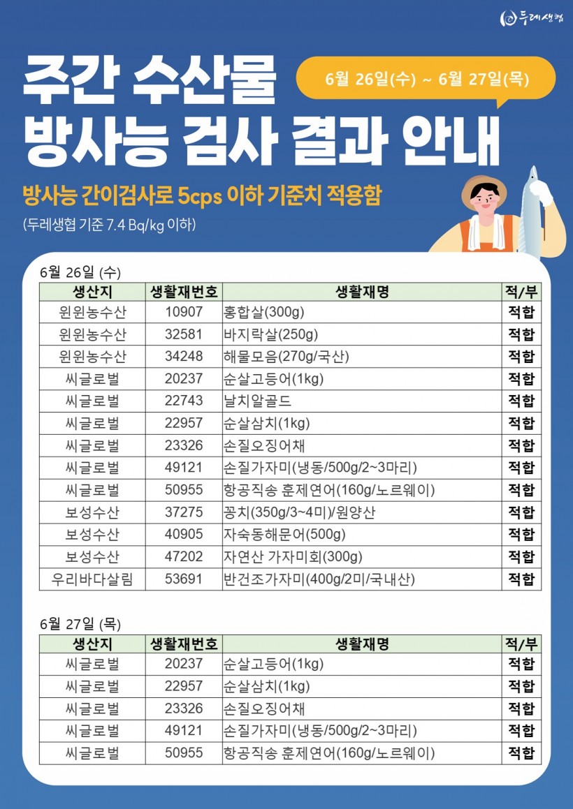2024년 26주 수산물 주간 방사능검사 > 생활재 검사결과