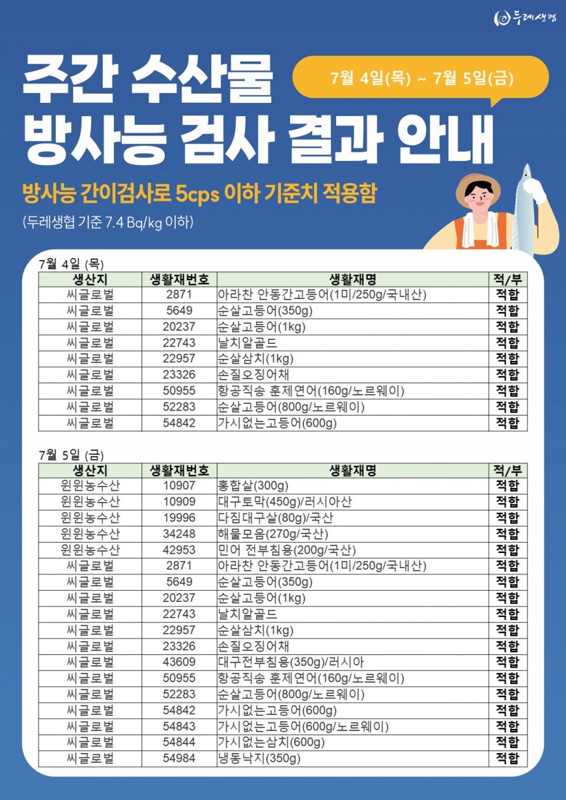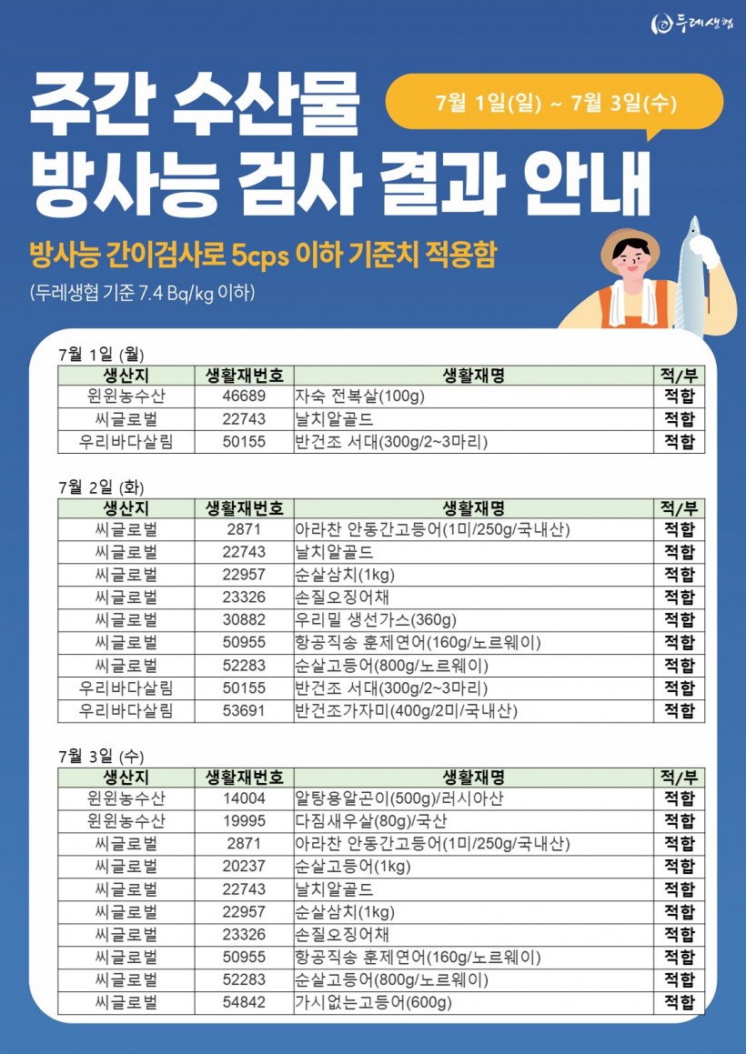 2024년 27주 수산물 주간 방사능검사 > 생활재 검사결과