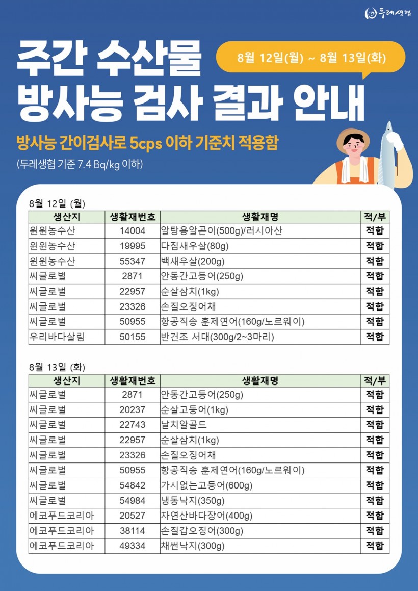 2024년 33주 수산물 주간 방사능검사 > 생활재 검사결과