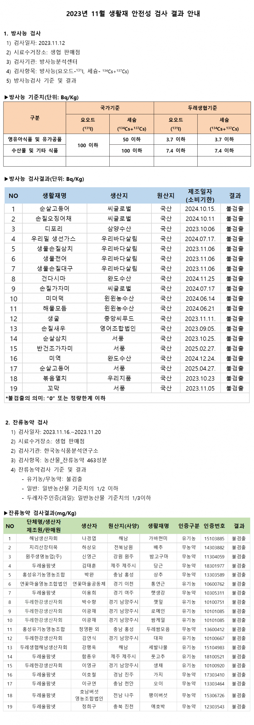 2023년 11월 생활재 안전검사 결과 > 생활재 검사결과