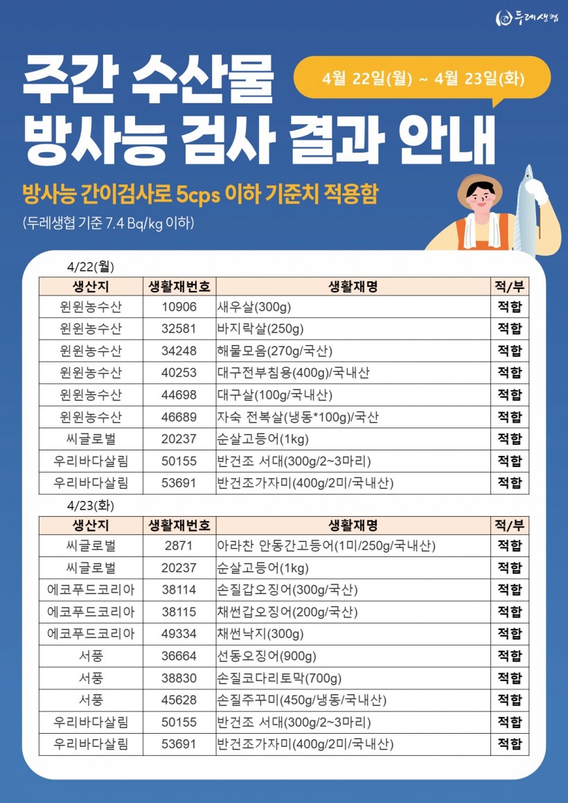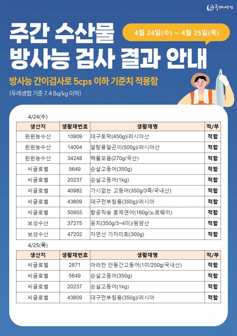 2024년 17주 수산물 주간 방사능검사 > 생활재 검사결과
