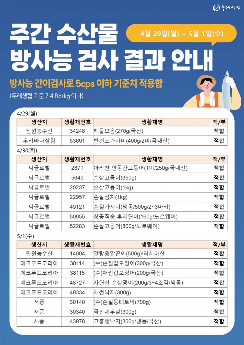 2024년 18주 수산물 주간 방사능검사 > 생활재 검사결과