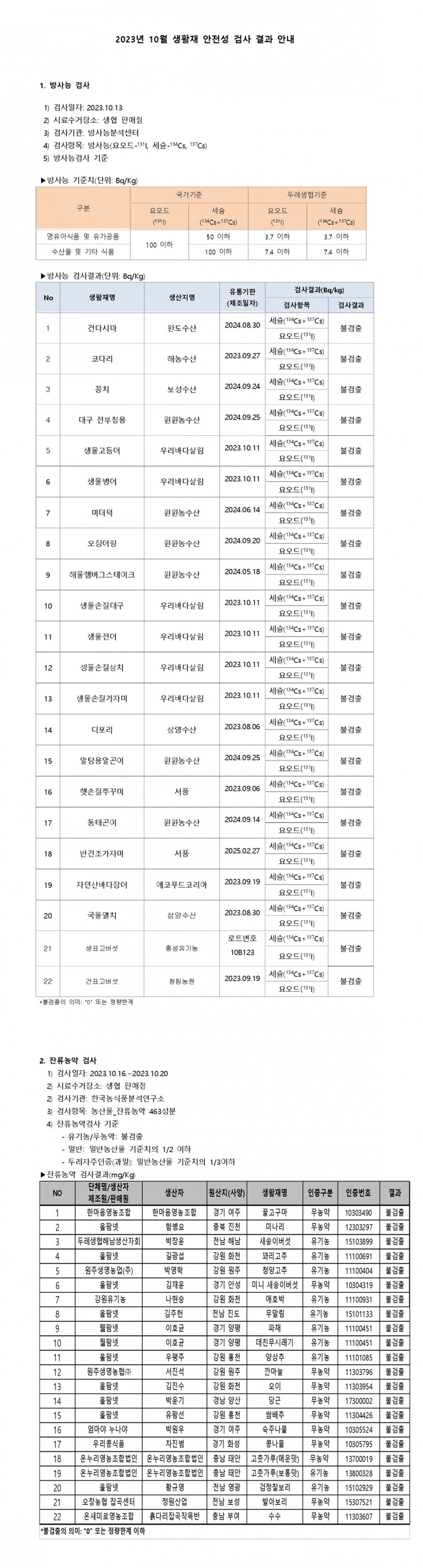 2023년 10월 생활재 안전검사 결과