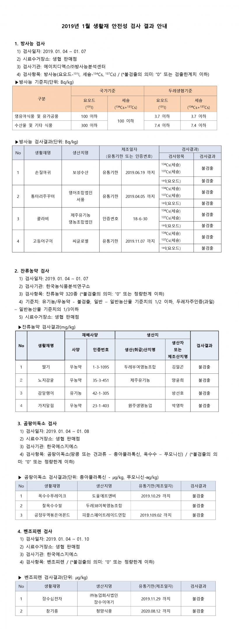 2019년 1월 생활재 안전검사 결과 > 생활재 검사결과