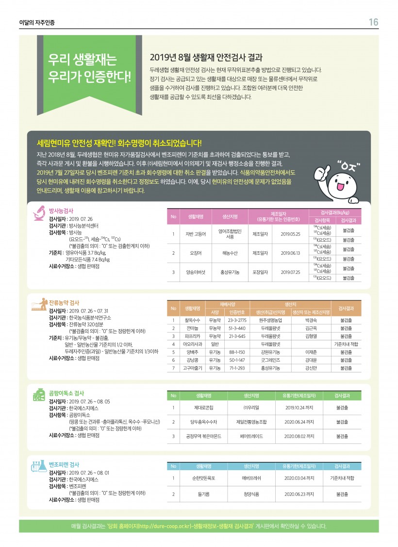 2019년 8월 생활재 안전검사 결과 > 생활재 검사결과
