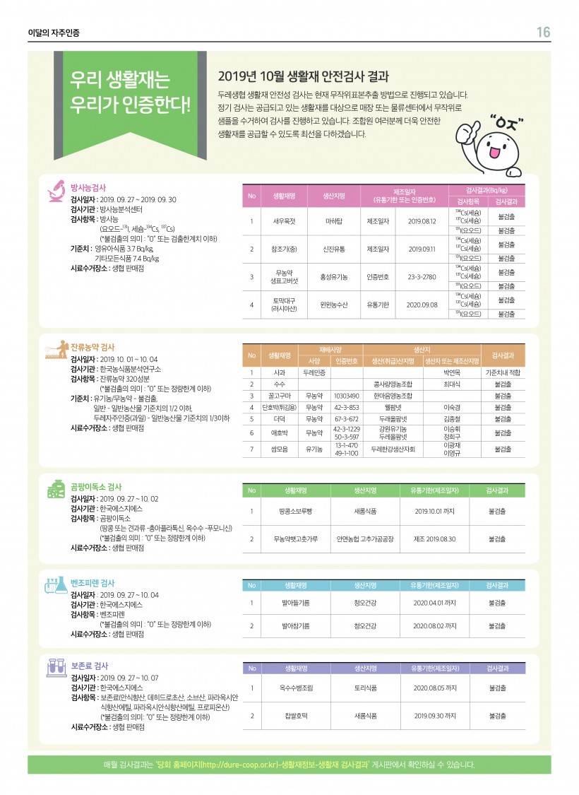 2019년 10월 생활재 안전검사 결과 > 생활재 검사결과