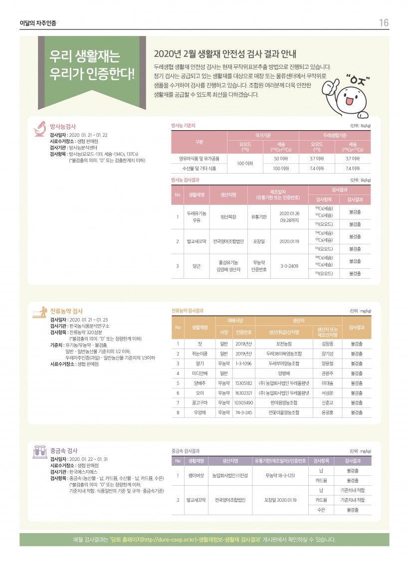 2020년 2월 생활재 안전검사 결과