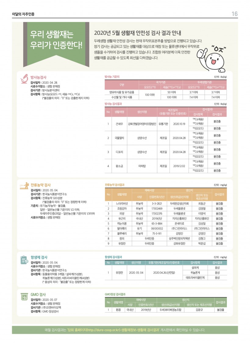 2020년 5월 생활재 안전검사 결과 > 생활재 검사결과