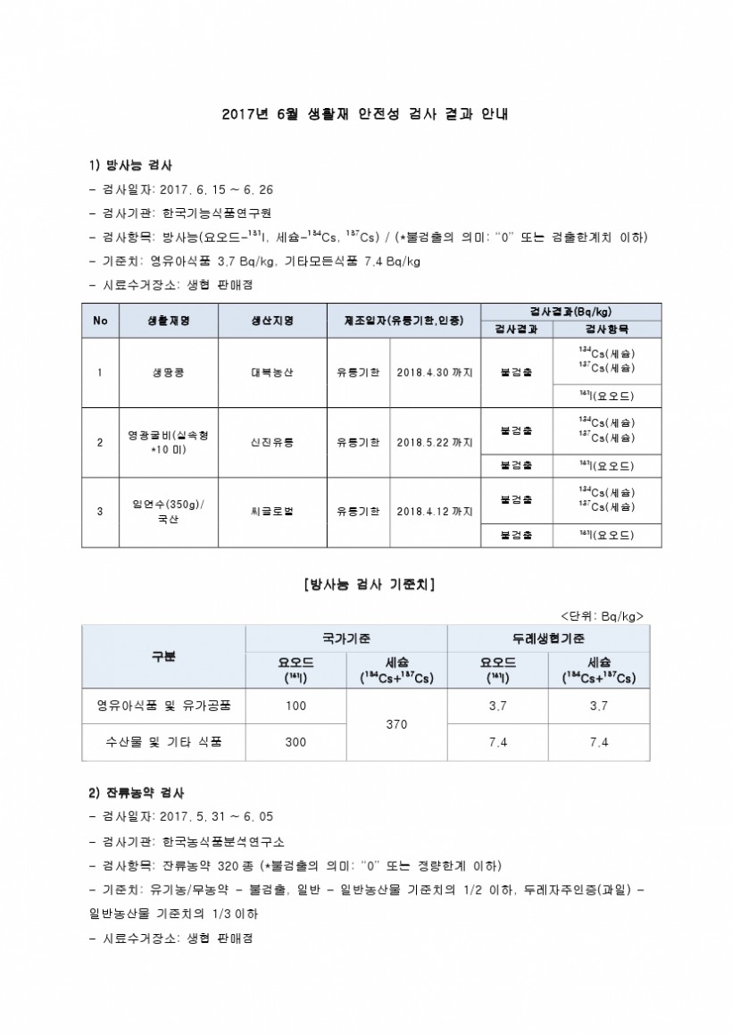 2017년 6월 생활재 안전검사 결과 > 생활재 검사결과