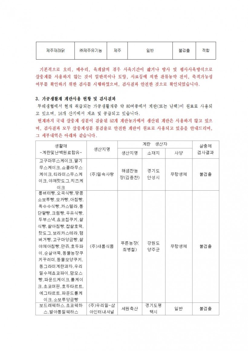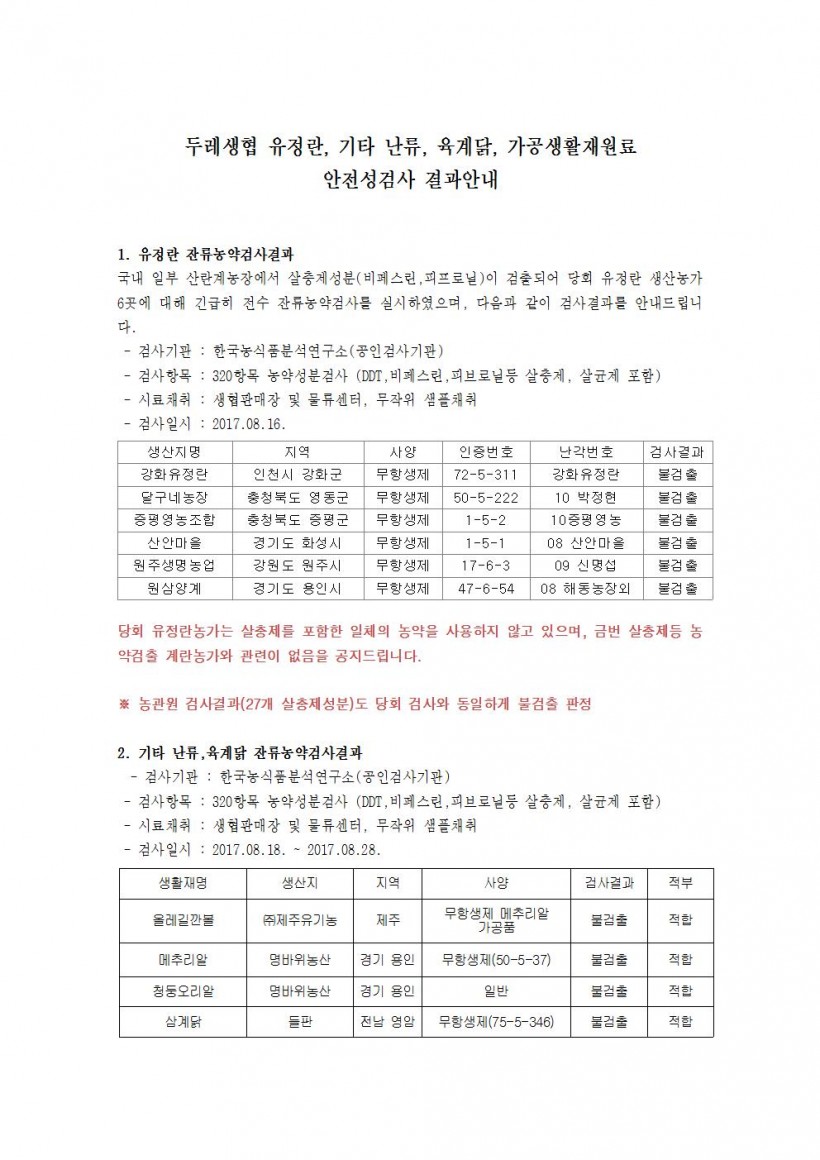 두레생협 유정란 잔류농약 안전검사 결과 > 생활재 검사결과